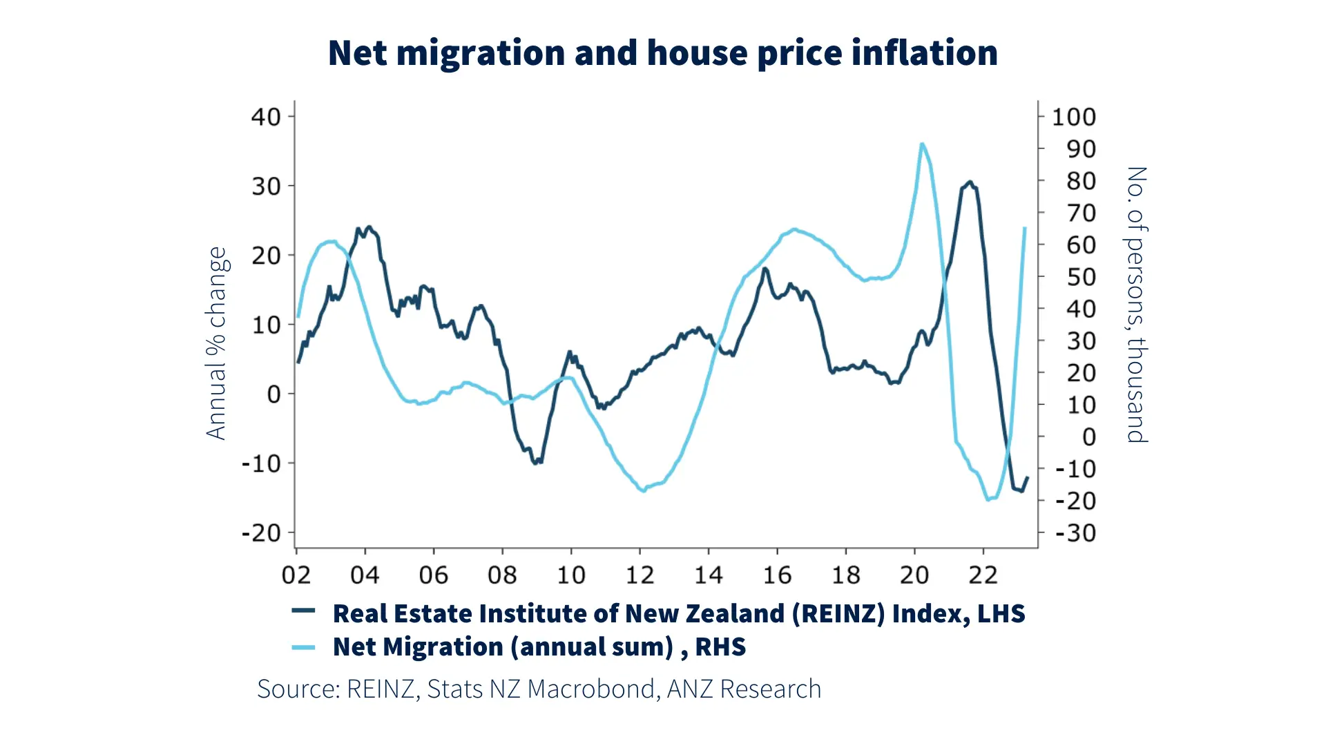 Net immigration for the year to March is now sitting at over 65,000 compared to a net loss of nearly 20,000 in the previous year…. forecasts are for this to grow to a net inflow of 100,000 people this year – this would be the fastest rate of population growth New Zealand has seen in decades.