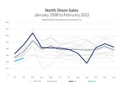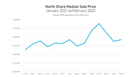 The median sale price increased 3.7% to $1,370,000 compared to February 2021, yet down 11.9% from the peak of $1,555,000 in November last year. It should be noted that recent market changes have impacted the various segments of the market differently. Sales over $2M have remained relatively strong with the percentage of sales over this threshold doubling for Harcourts Cooper & Co from 8% of total sales in February 2021 to 17% last month. This in turn also impacts the median sale price.