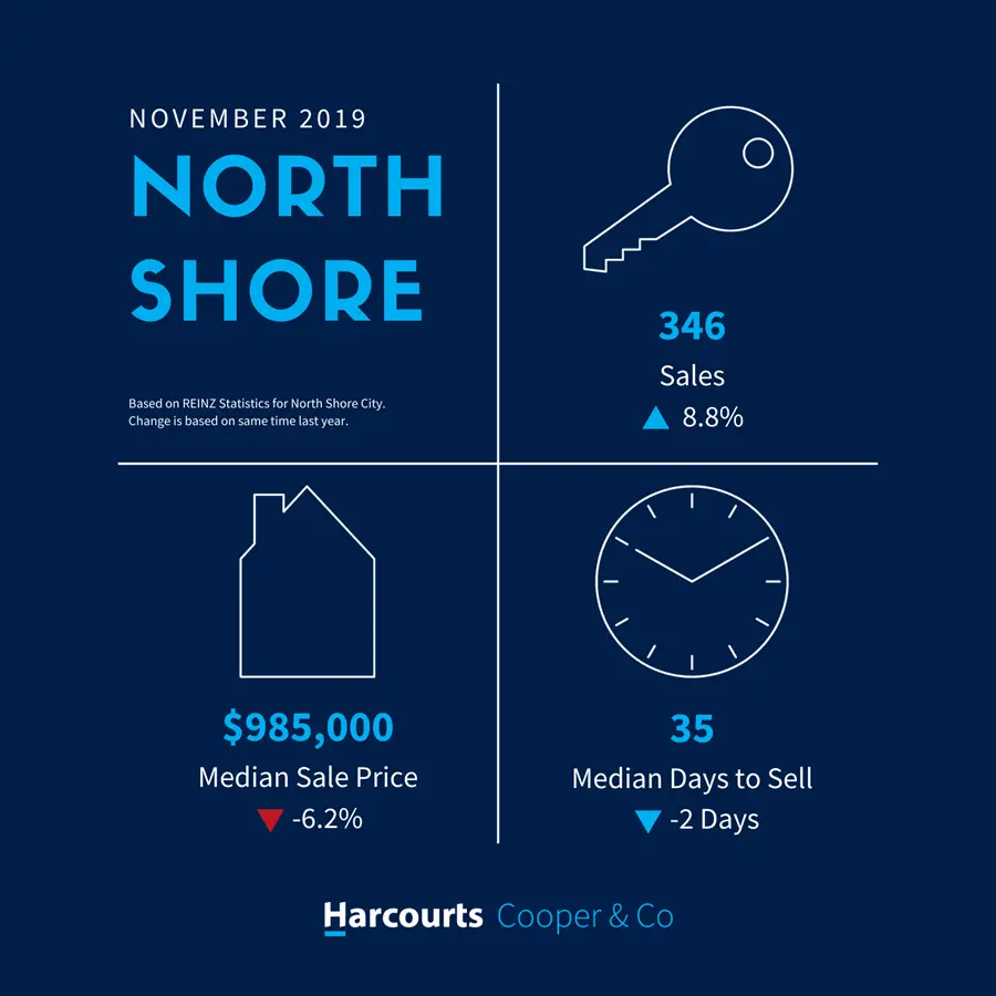 Rising levels of confidence in the North Shore market is evident. The volume of sales increased again in November to 346, up 8.8% since the same time last year. Despite increased volumes, the median price reduced from $1,050,000 in November 2018 to $985,000 in November 2019.