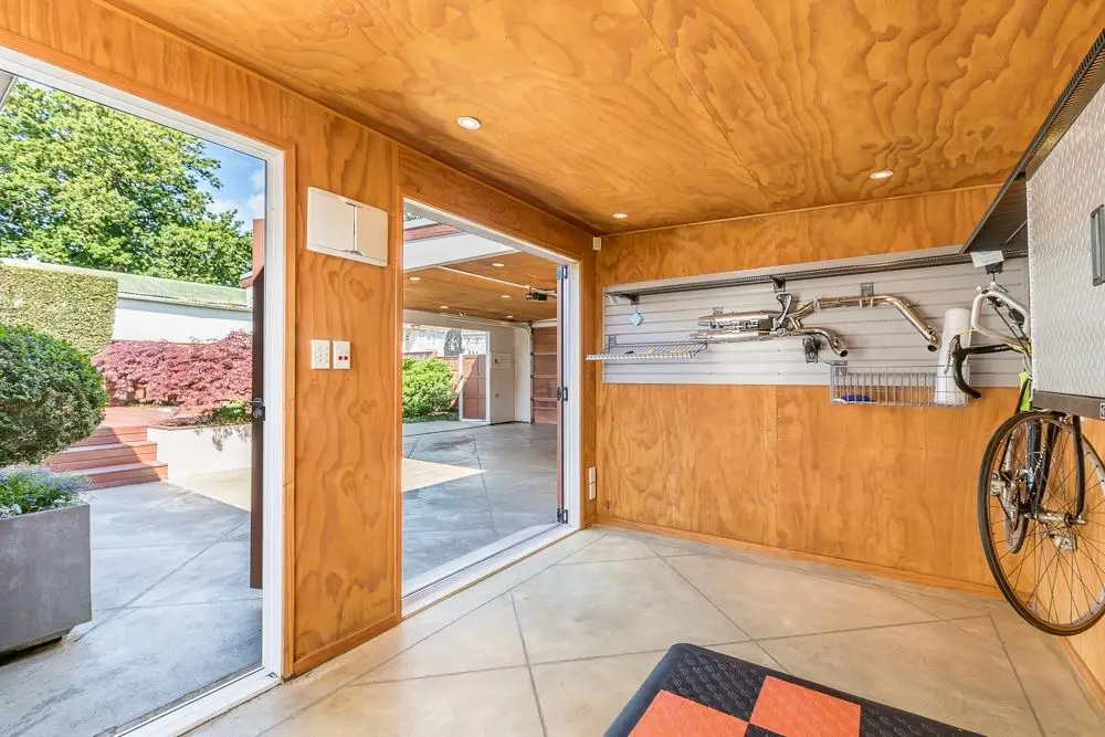 A gate also opens into the property from the Opua Road entrance, along with the large double carport with electric door access. A deck steps down to a paved terrace out here, with Japanese-style gardens and a trickling water feature. A series of well fitted and finished sheds also make the ideal workshop, bike storage, man-cave or office.